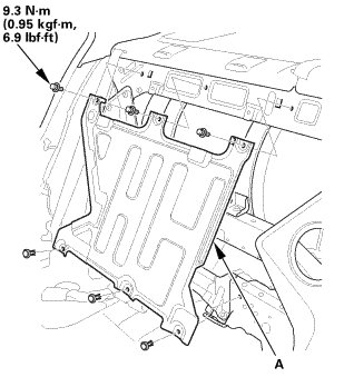 1. Disconnect the speaker connectors, and remove the rear parcel cover (A).