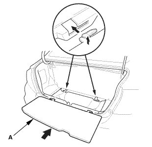 1. Remove the trunk front trim panel (A) and the trunk partition (B) as an assembly.