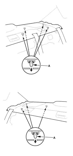 * Do not push too hard on the C-pillar trim. If you push too hard, the clip will be damaged, and it will not hold the trim properly.