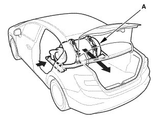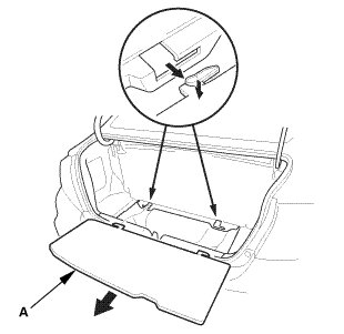 1. Remove the rear shelf gussets (A) in the trunk.