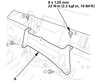 1. Install the rear floor undercover (A).