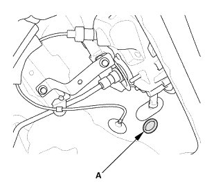 1. Remove the center seat belt buckle bolt (A) at the floor.