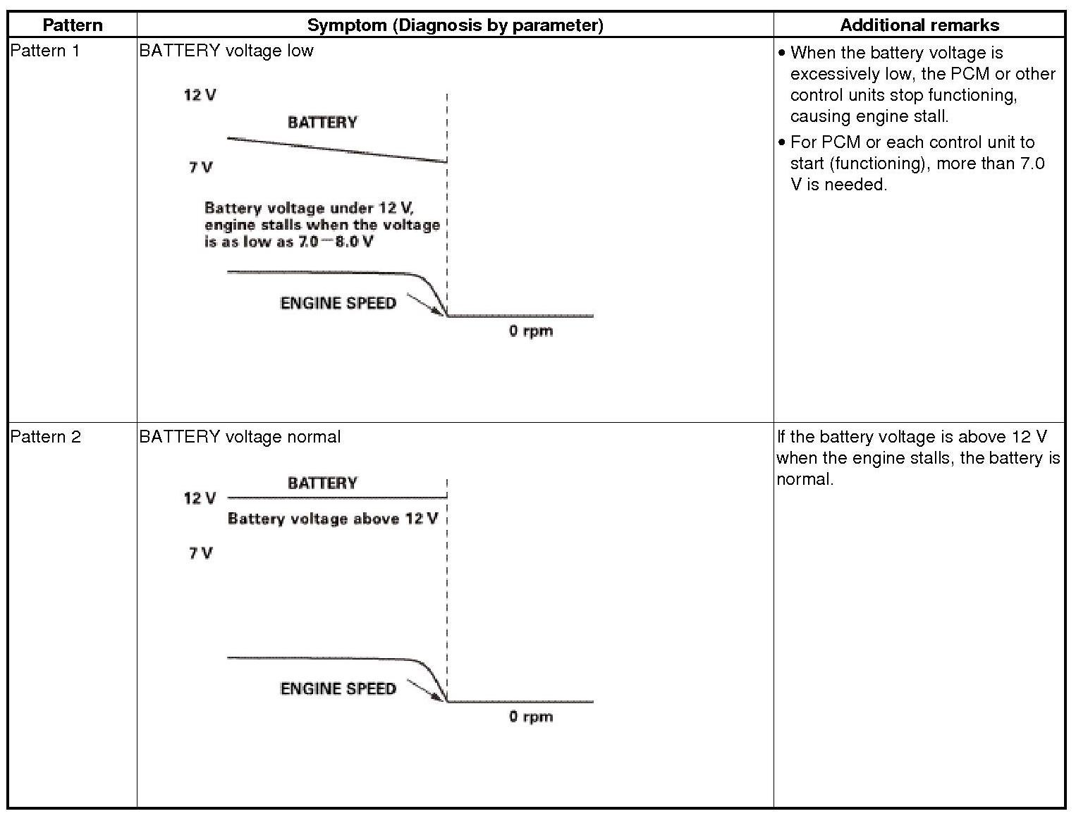 -Pattern 1- Test the battery Battery Test, and check the battery cables and terminal connections