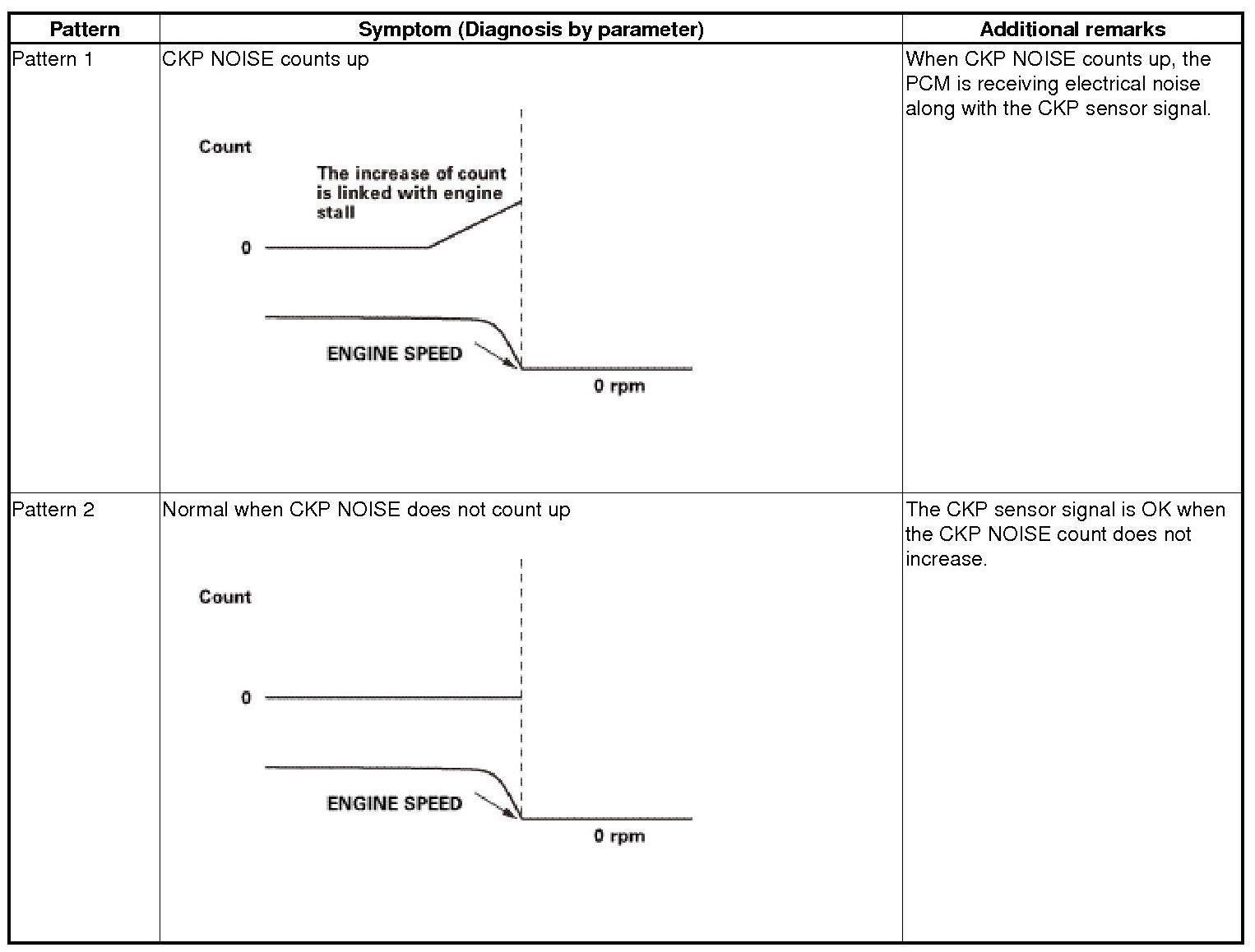 -Pattern 2- Go to step 8 (diagnosis by parameter (CKP NOISE)).