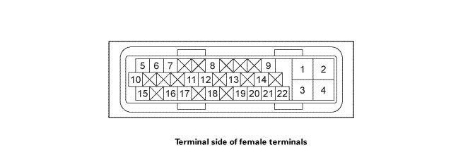 VSA Modulator-Control Unit Inputs and Outputs for 22P Connector (Connector Disconnected)