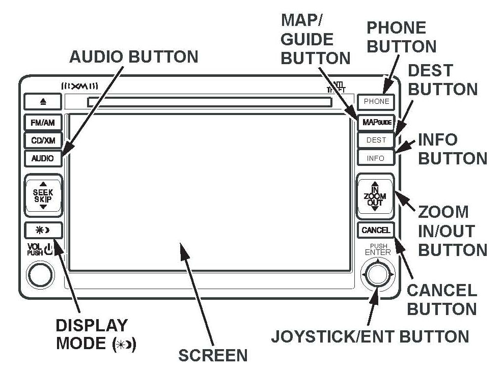 The buttons listed above are used in this bulletin. For more information on the button functions, see Getting Started in the navigation manual.