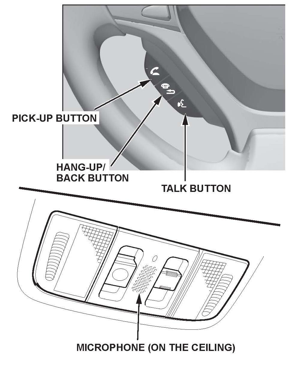 The navigation system features a voice control system that allows you to operate most of the navigation and audio controls with only your voice. To interact with the navigation system, use the TALK and HANG-UP/BACK buttons. The microphone is located on the ceiling. This is the primary way to give commands to the system.