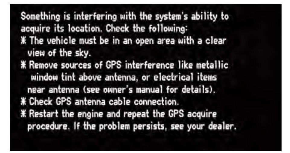 ^ The GPS antenna receives location information from orbiting satellites. Anything that blocks or interferes with the signal affects accuracy. The GPS signal can be blocked or interfered with (vehicle position shown incorrectly on the map) by: