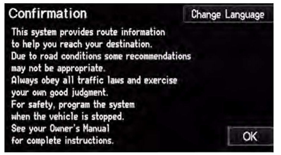 6. When initialization is complete, the disclaimer screen appears. Touch OK.