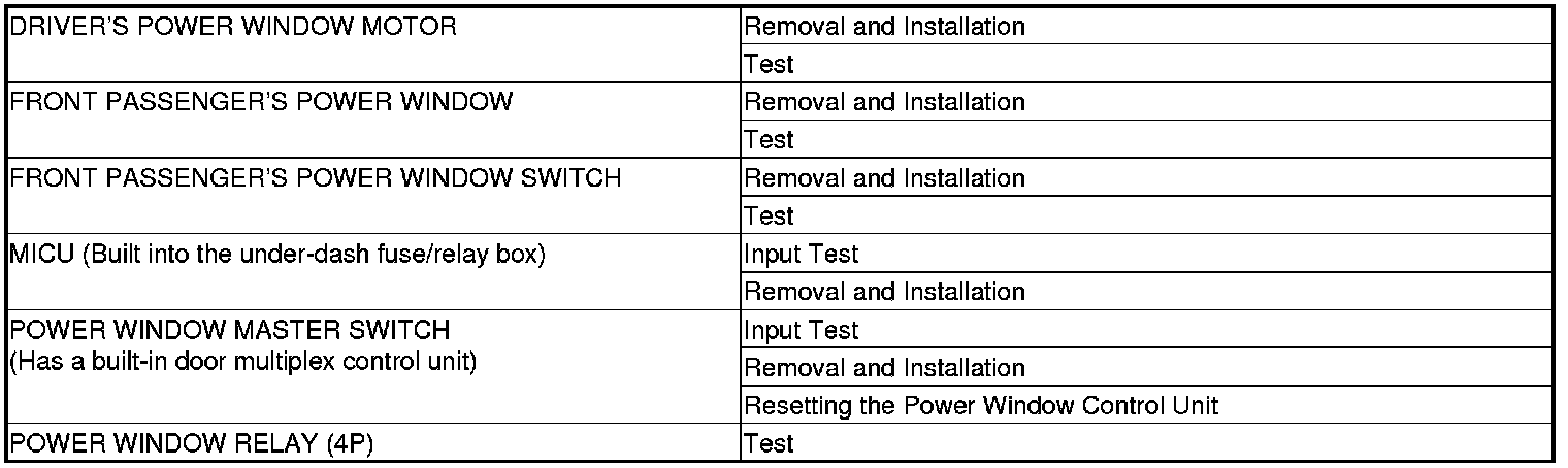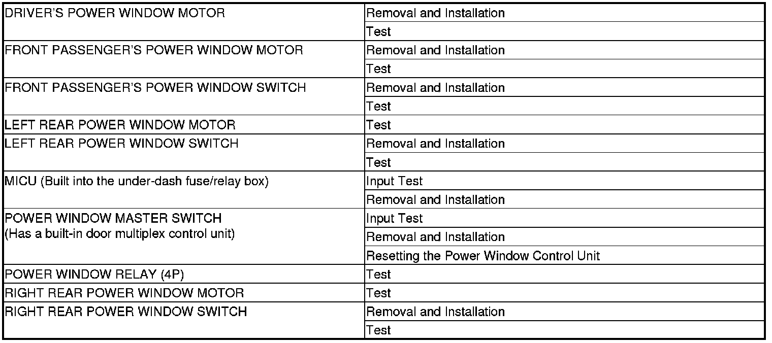Power Windows Component Location Index