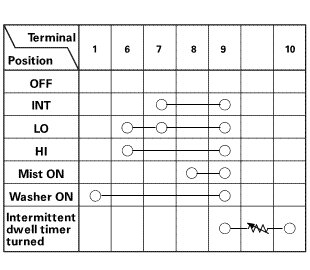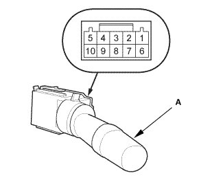 3. If the continuity is not as specified, replace the wiper/washer switch (A).