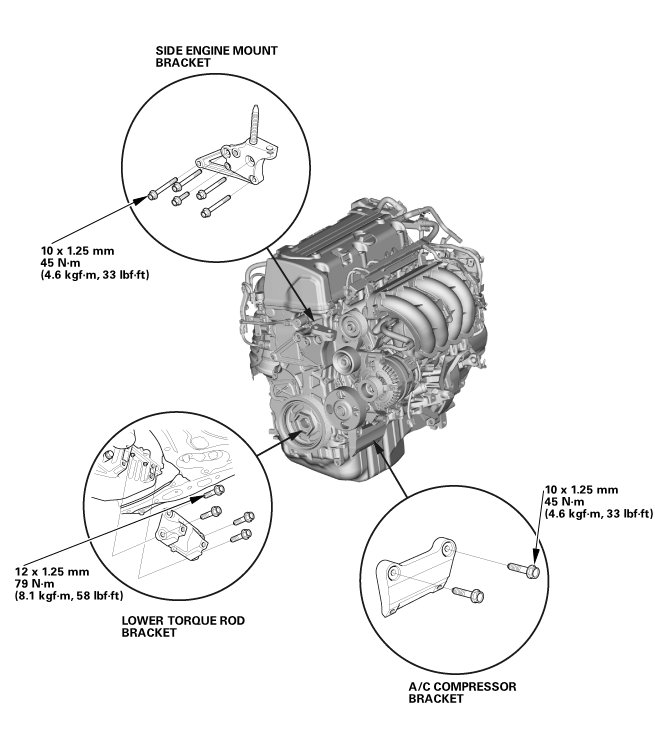 1. Install the lower torque rod bracket, and tighten the new bolts to the specified torque.