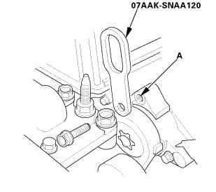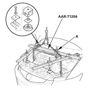 4. Tighten the wing nut (A) by hand, and lift and support the engine/transmission.