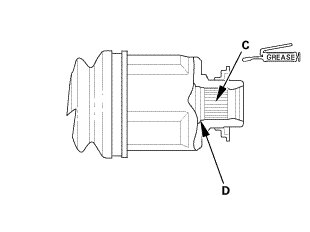 6. Right driveshaft: Apply 0.5-1.0 g (0.018-0.035 oz) of molybdenum grease to the whole splined surface (C) of the right driveshaft.