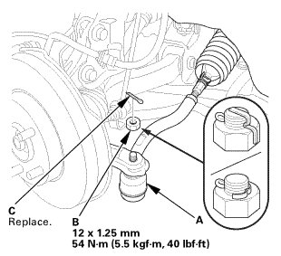 2. Connect the tie-rod ball joint (A) to the knuckle.