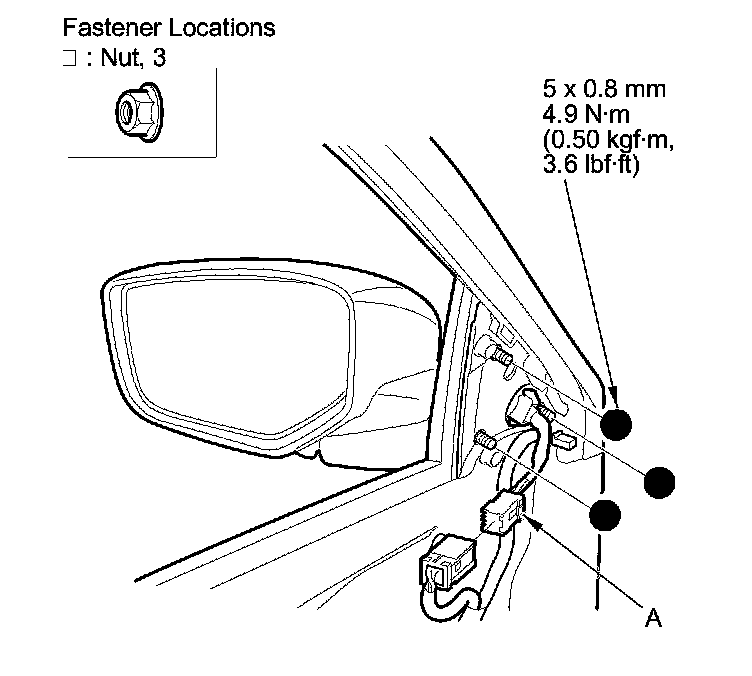 2. Disconnect the power mirror connector (A).