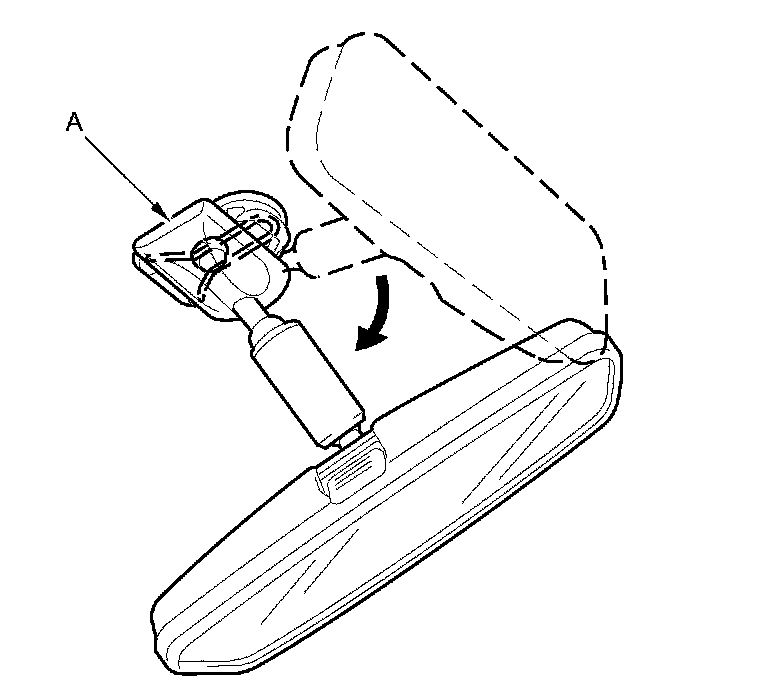2. Slide the rearview mirror base (A) down toward the bottom of the windshield to detach it from the spring (B) in the mount (C).