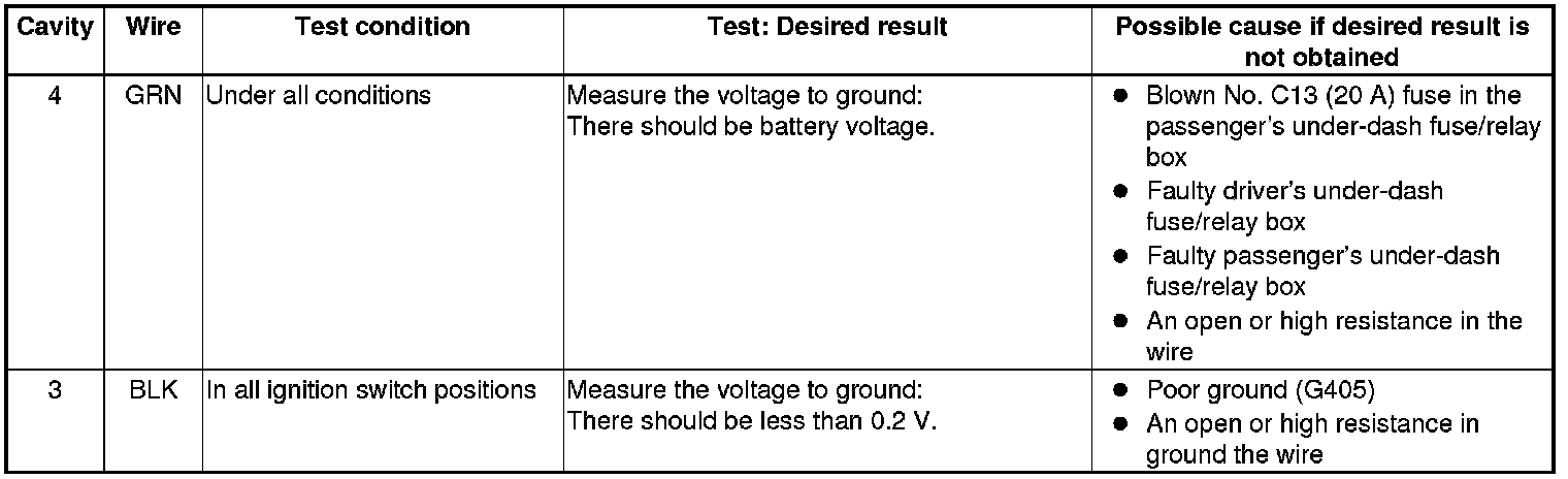 NOTE: Before testing, troubleshoot the multiplex integrated control unit first, using B-CAN System Diagnosis Test Mode A Troubleshooting - B-CAN System Diagnosis Test Mode A.