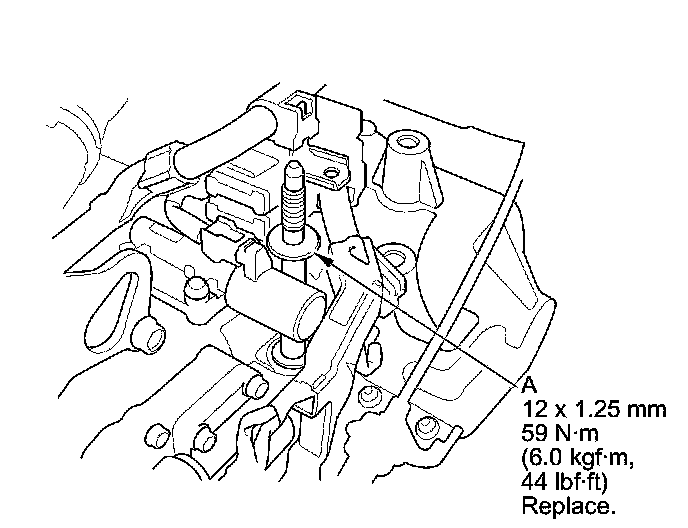 2. Replace the upper transmission mount stud bolt (A).
