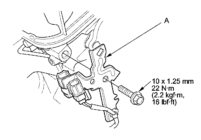 22. Install the connector bracket (A) to the front cylinder head.