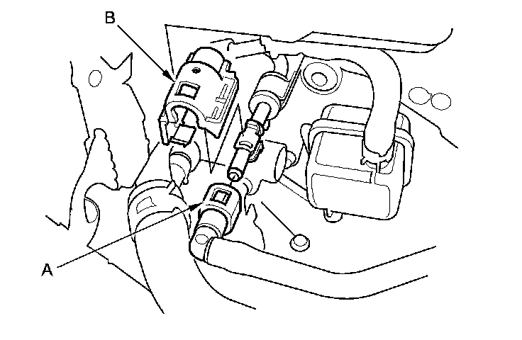50. Connect the EVAP canister hose (A) and the brake booster vacuum hose (B).