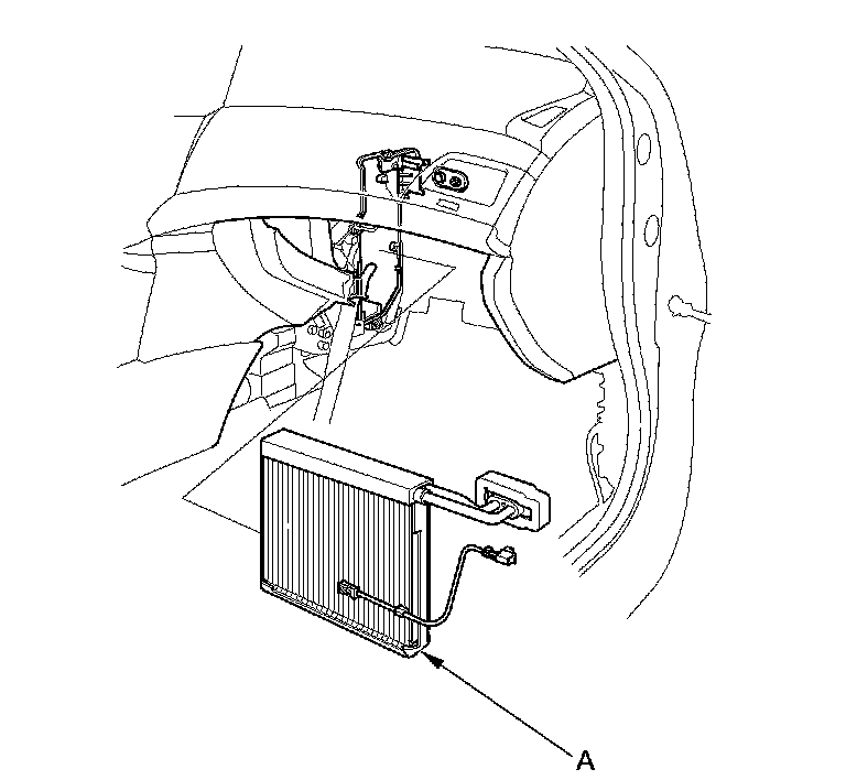 8. Carefully pull out the evaporator core (A) without bending the lines.