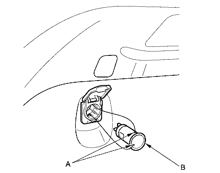 8. Gently press tabs (A), then remove the socket (B).