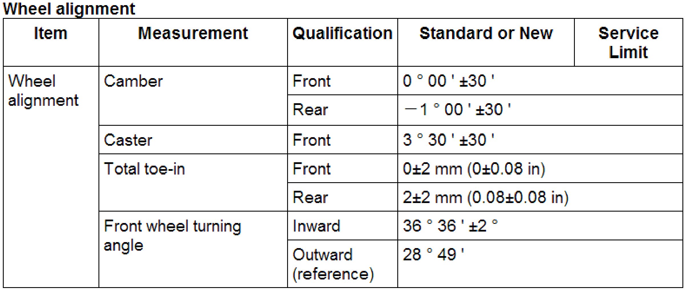 Wheel Alignment Specifications