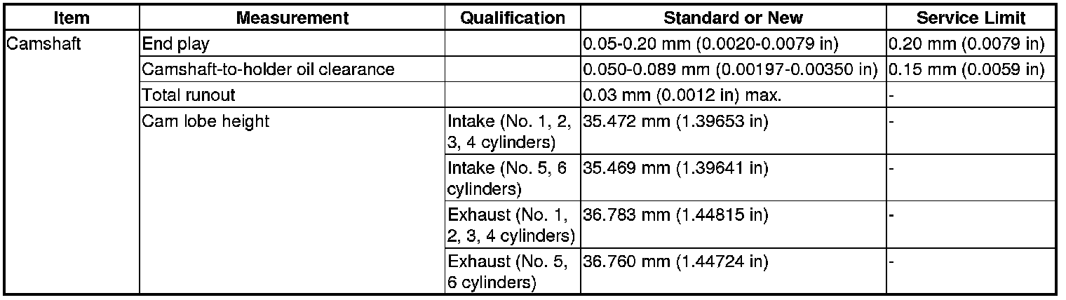 Camshaft Specification(s)