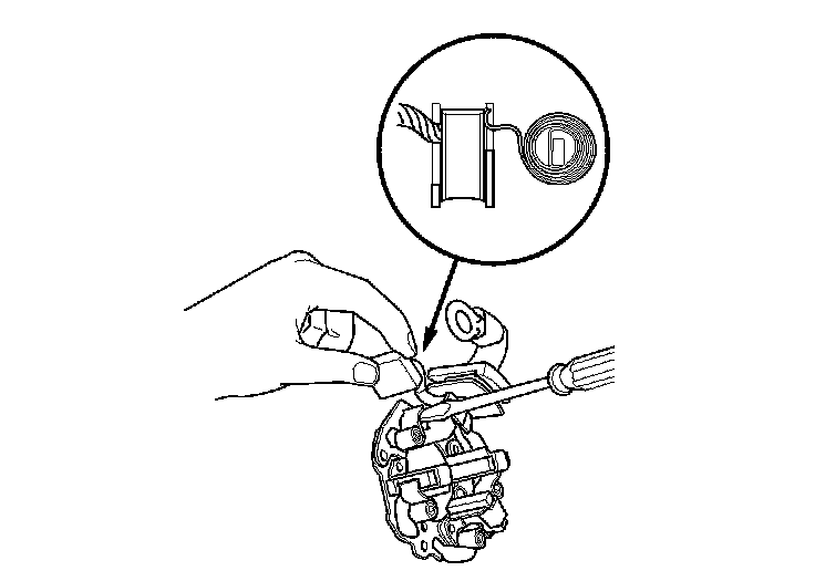 3. Pry back each brush spring with a screwdriver, then position the brush on the brush holder about halfway out of its holder. Release the spring to hold it in place.