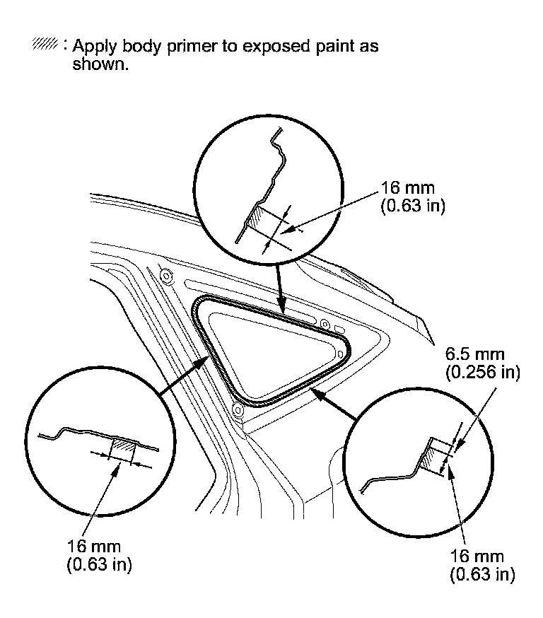 11. Carefully apply a light coat of body primer to any exposed paint or metal around the flange where the new adhesive will be applied. Let the body primer dry for at least 10 minutes: