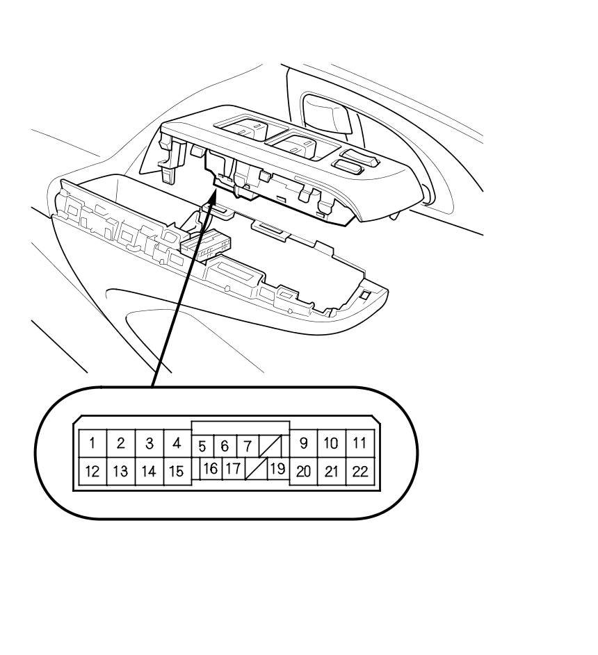 1. Remove the power window master switch, and disconnect its connector Power Window Master Switch Replacement.