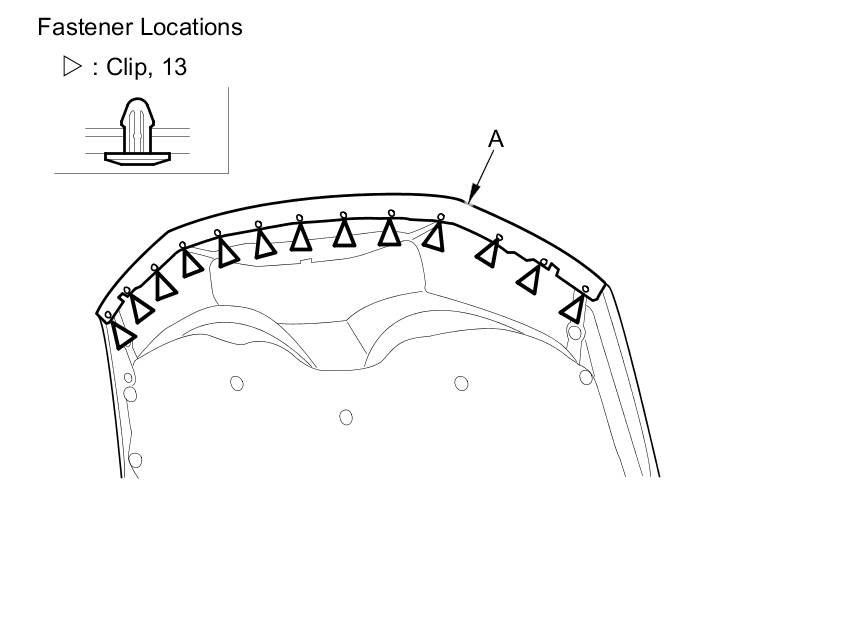 1. Detach the clips with a clip remover, then remove the hood seal (A).