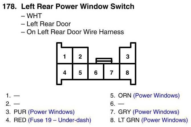 View 178 - Left Rear Power Window Switch Connector View