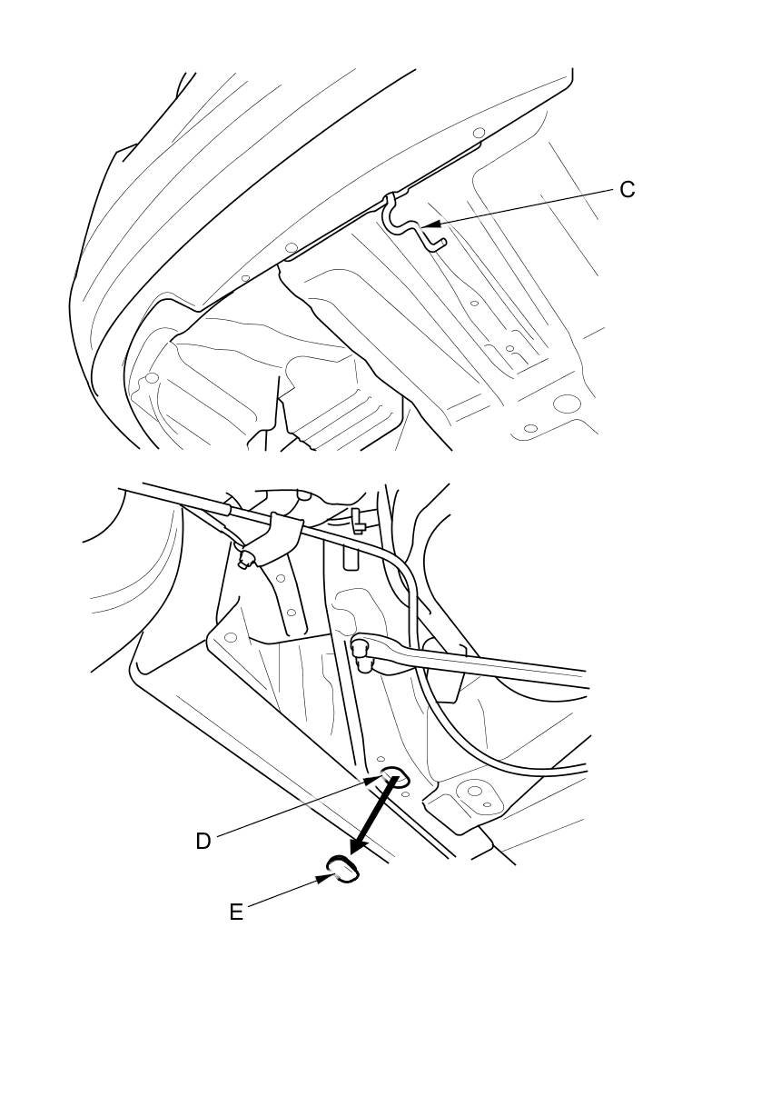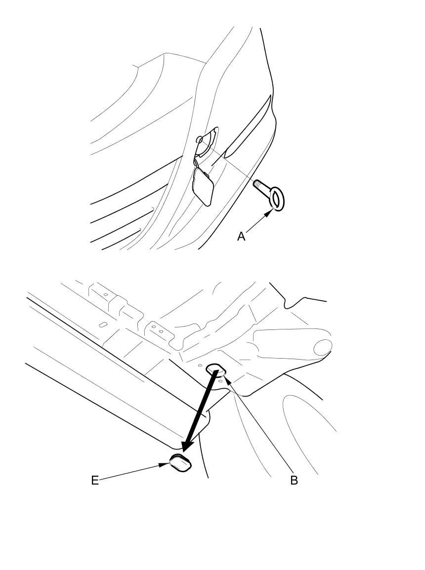 NOTE: The tie down hook slots have rubber plugs (E) over the openings. Be sure to reinstall the plugs after use.