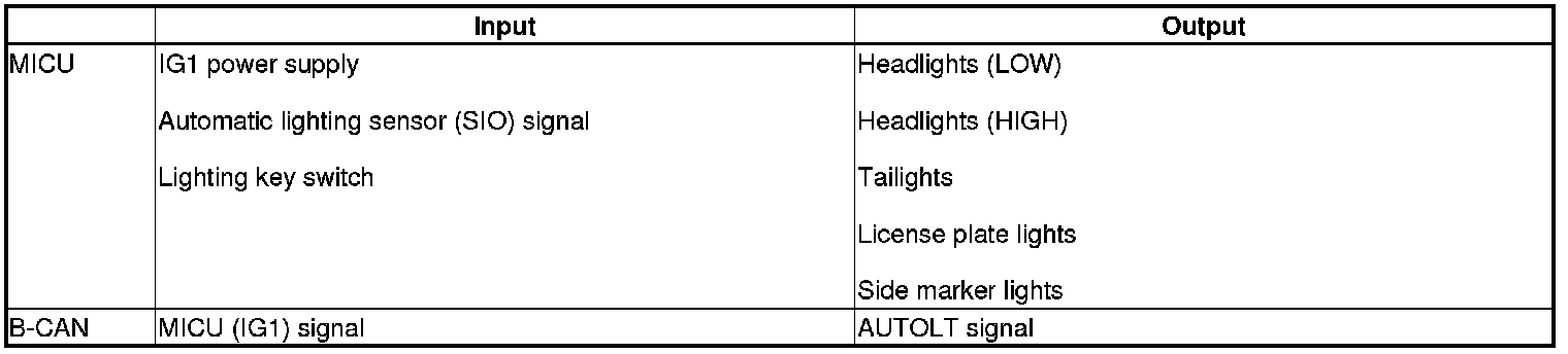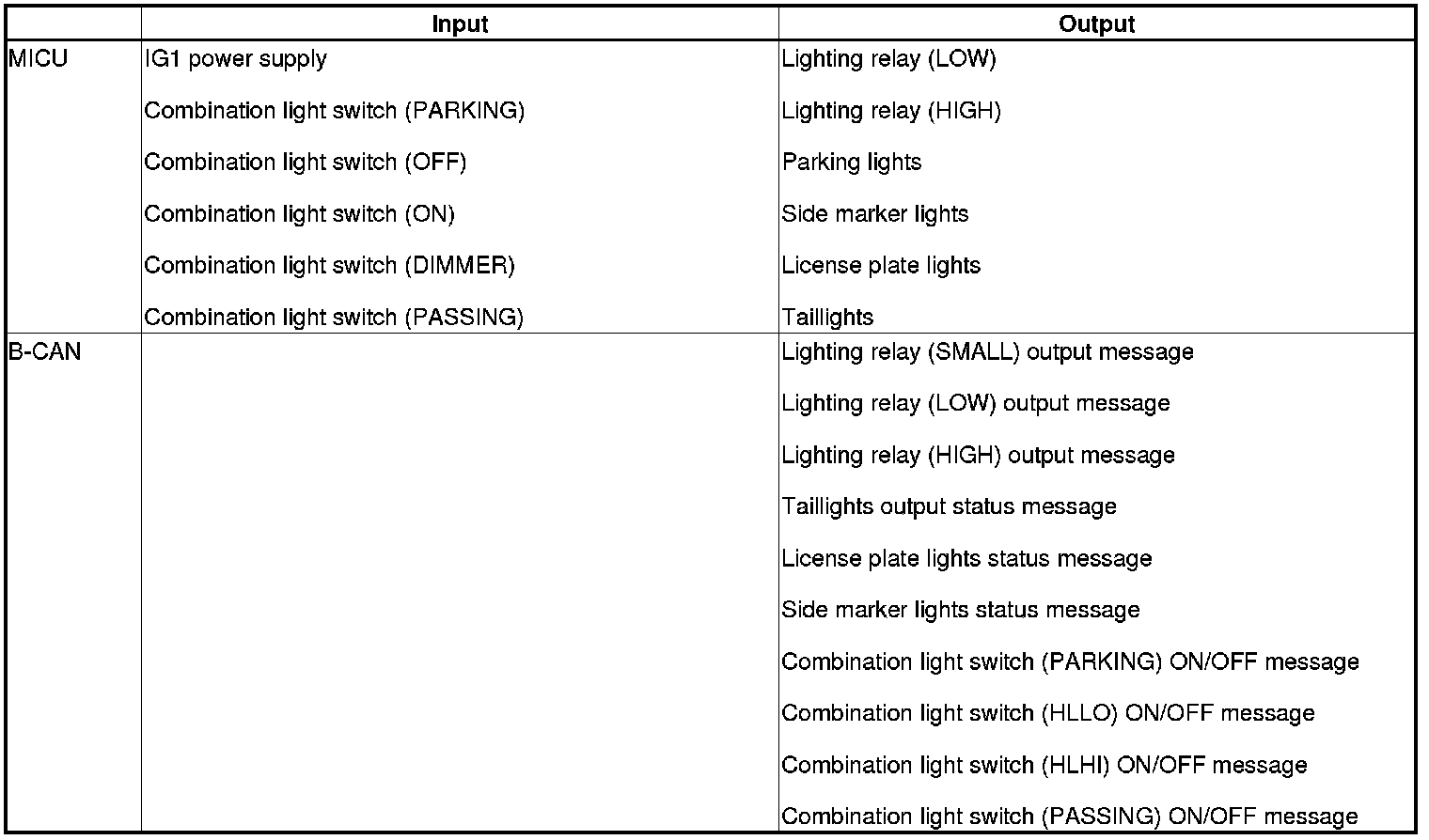 When any of the data from the B-CAN circuit cannot be received within a specified time, or an unusual combination of data is recognized, the MICU moves to the software fail-safe mode. The data that was not received is forced to a pre-programmed value.