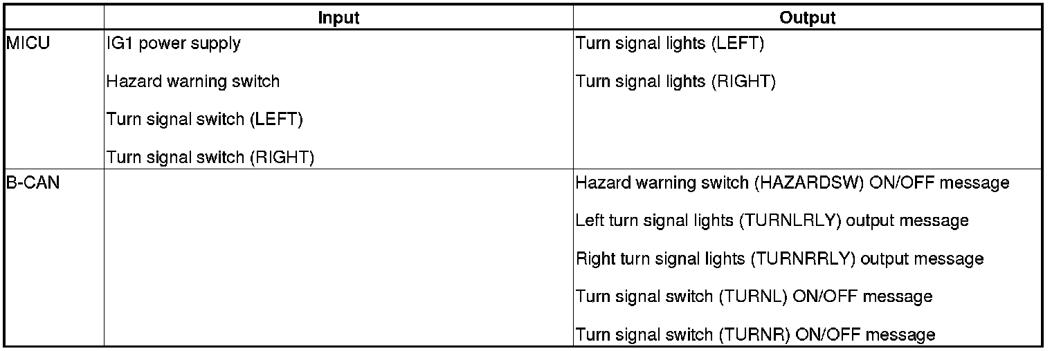 The MICU controls the turn signal/hazard warning lights based on inputs from the turn signal switch and the hazard warning switch.