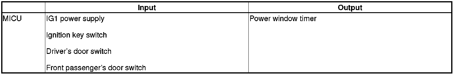 The MICU controls the power window key-off operation based on inputs from each switch.