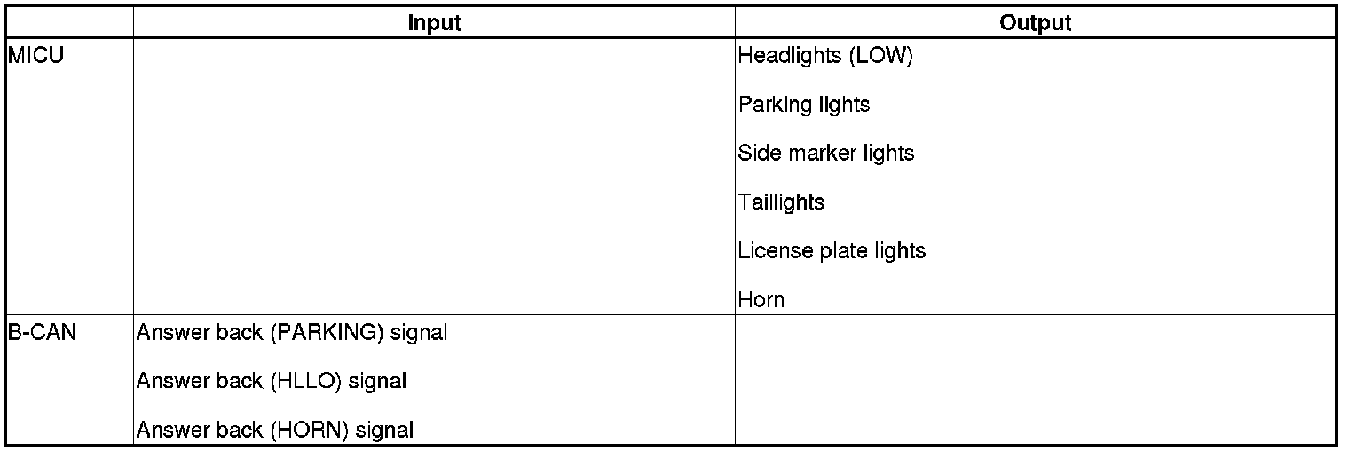 The MICU controls the lighting system and horn based on keyless signals sent by B-CAN.