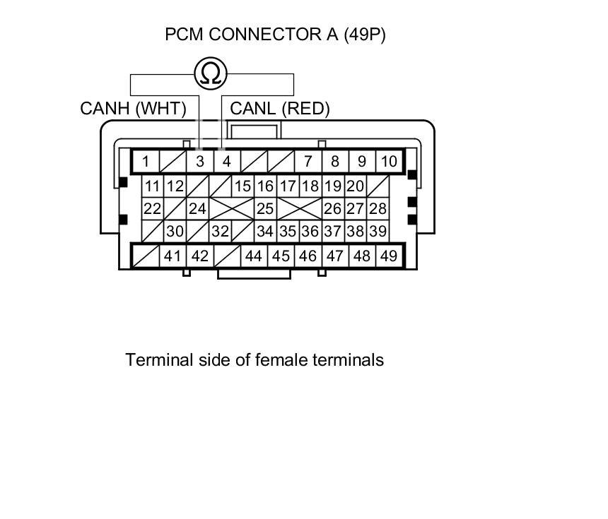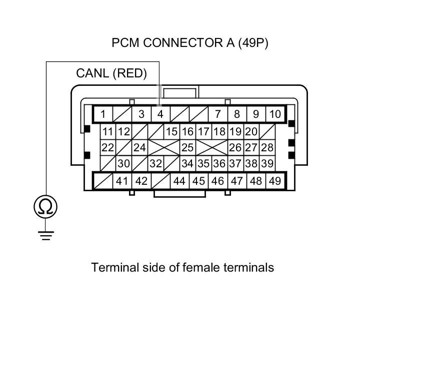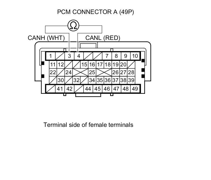14. Measure the resistance between PCM connector terminals A3 and A4.
