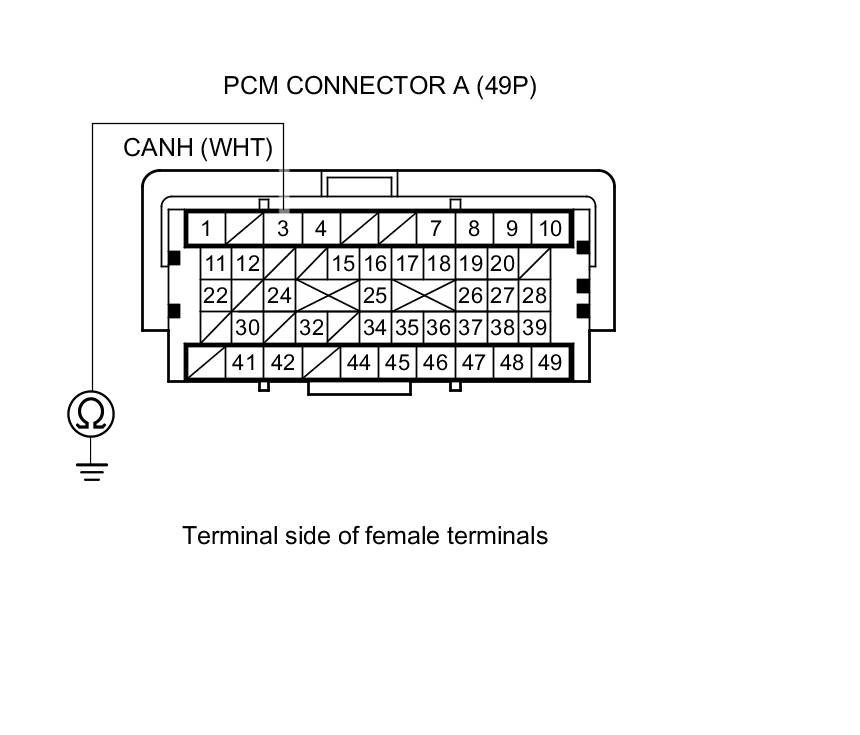 19. Check for continuity between PCM connector terminal A3 and body ground.