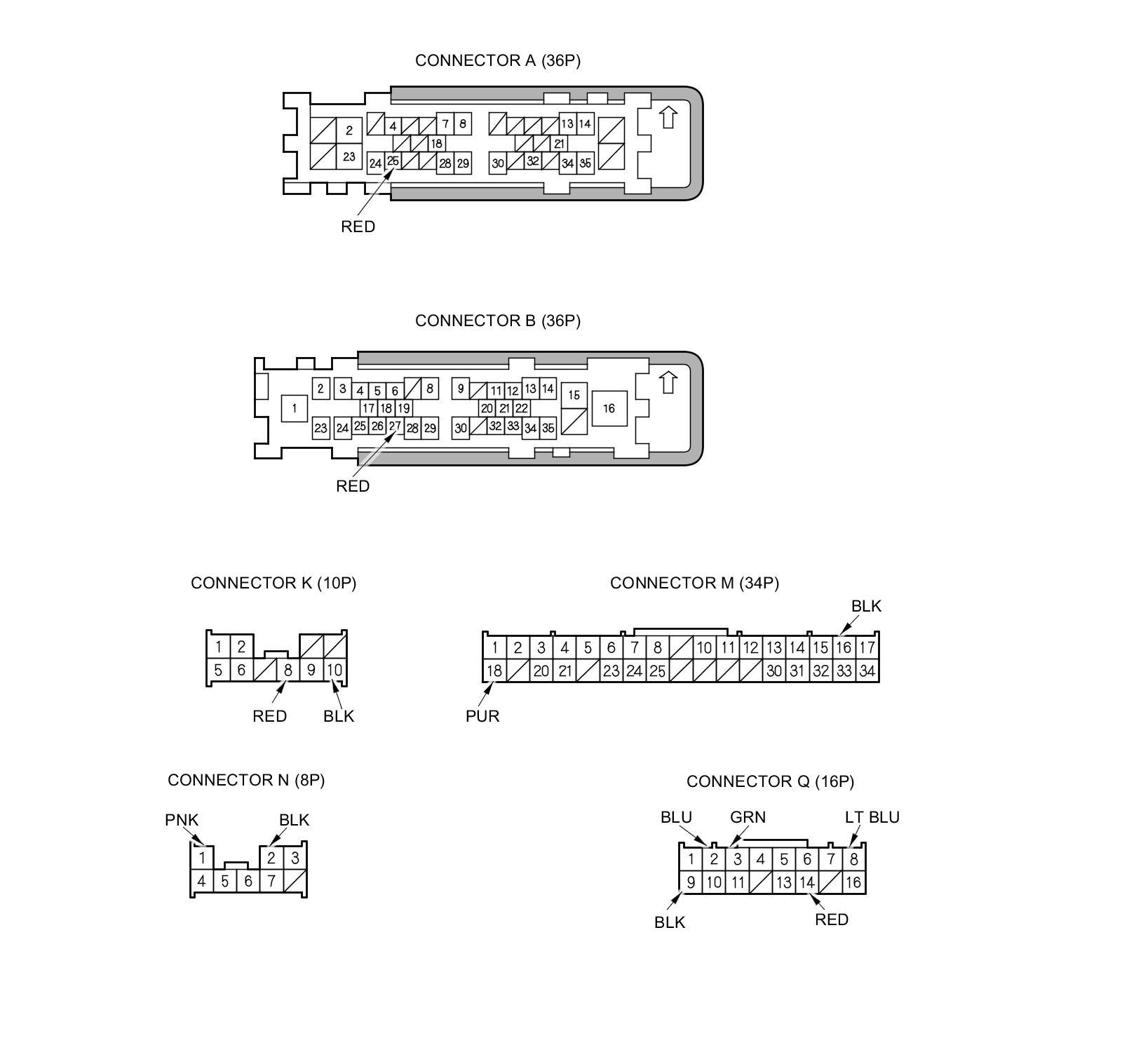3. Disconnect under-dash fuse/relay box connectors A, B, K, M, N, and Q.