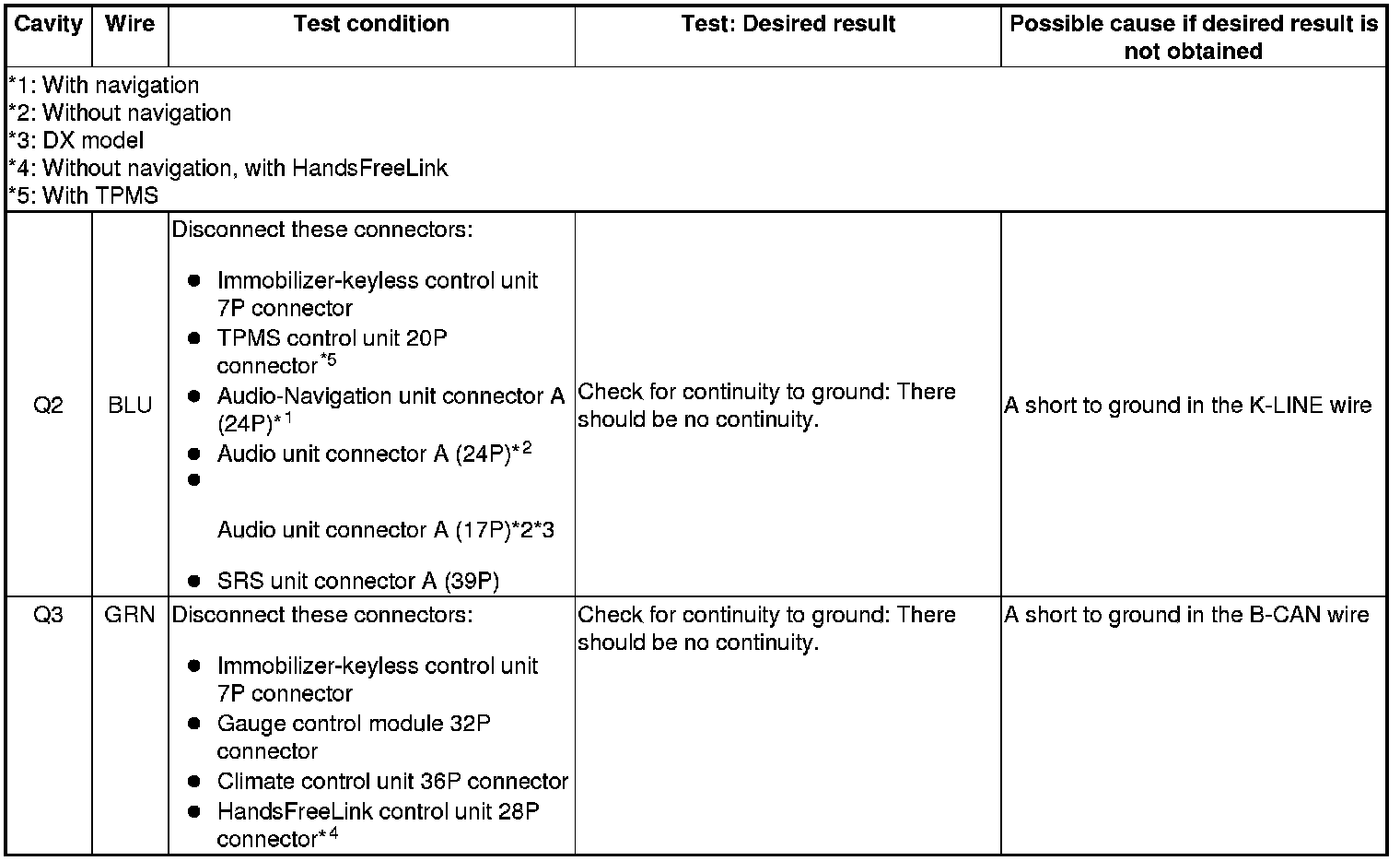- Before testing, troubleshoot the multiplex integrated control unit first, using B-CAN System Diagnosis Test Mode A Troubleshooting - B-CAN System Diagnosis Test Mode A.