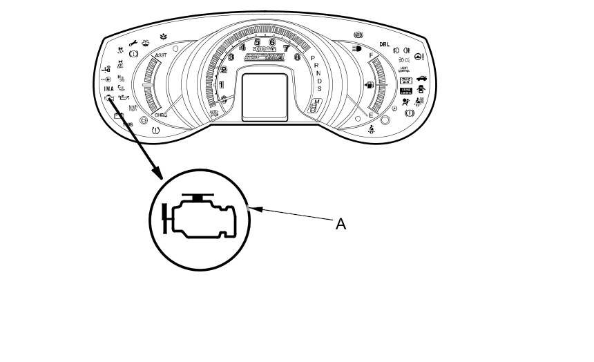 2. If the MIL stays on, connect the HDS to the data link connector (DLC) (A) located under the driver's side of the dashboard.
