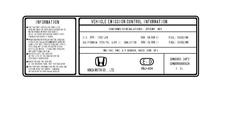 CONFORMS TO REGULATIONS: 2012 MY HEV