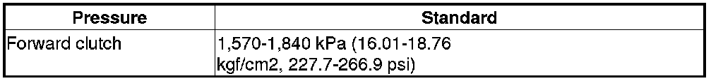 10. Shift the shift lever to D, and measure the forward clutch pressure at the forward clutch pressure inspection port while firmly pressing the brake pedal, and holding the engine speed at 1,700 rpm.
