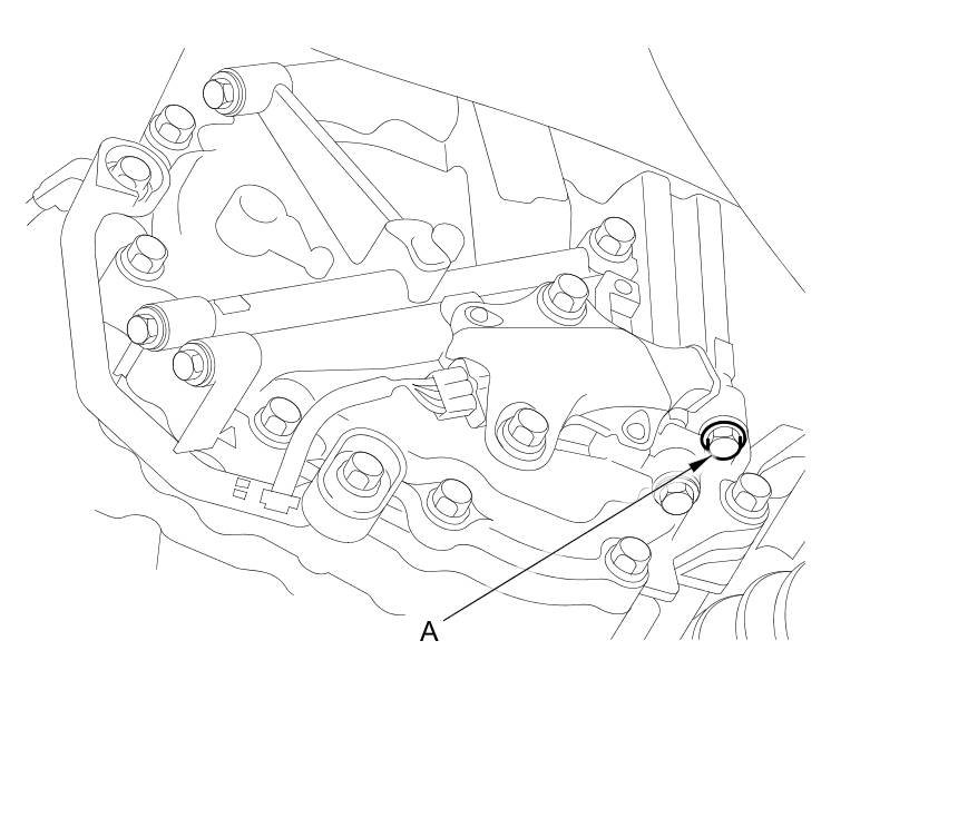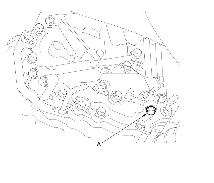 26. Connect the A/T low pressure gauge to the lubrication pressure inspection port (A).