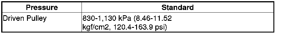 - Drive pulley pressure and driven pulley pressure may be above 3,430 kPa (34.98 kgf/cm2, 497.5 psi) when there is a transmission problem that causes the PCM to go into fail-safe mode.