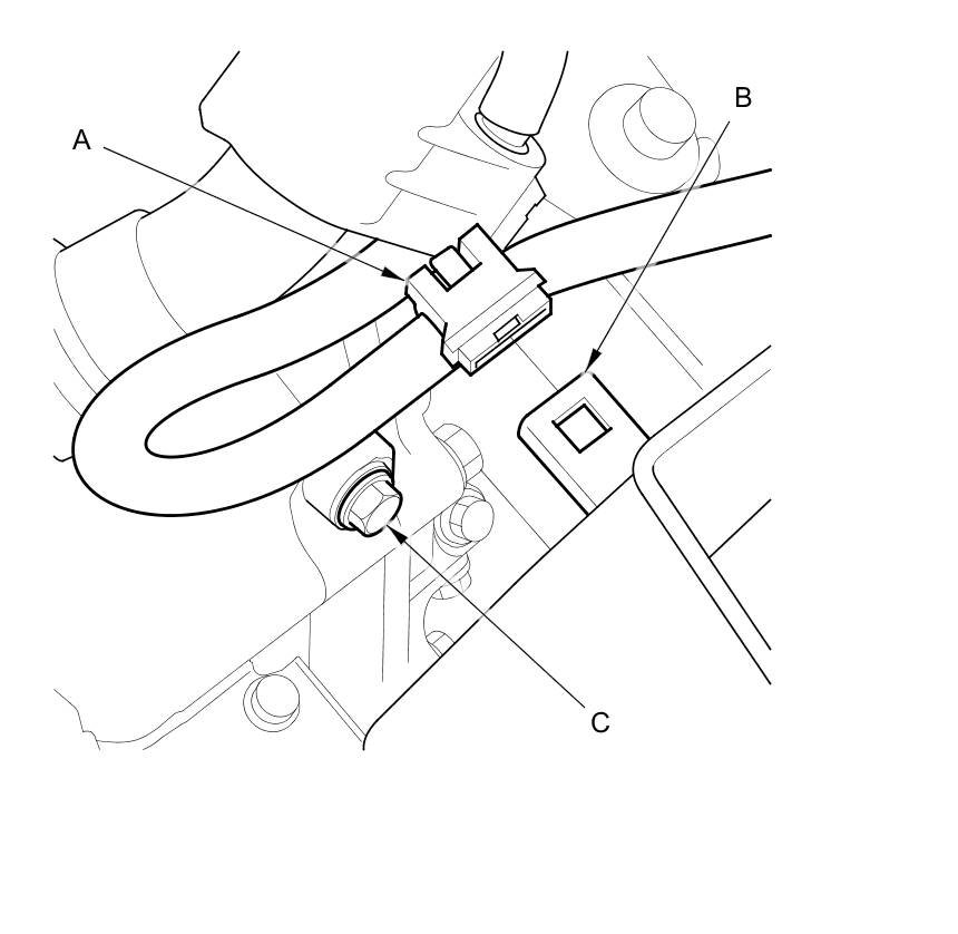 34. Connect the A/T oil pressure gauge set to the reverse brake pressure inspection port (C).
