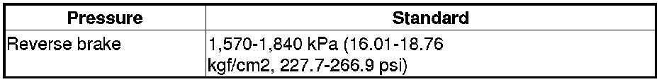 36. Shift the shift lever to R, and measure the reverse brake pressure at the reverse brake pressure inspection port while firmly pressing the brake pedal, and holding the engine speed at 1,700 rpm.